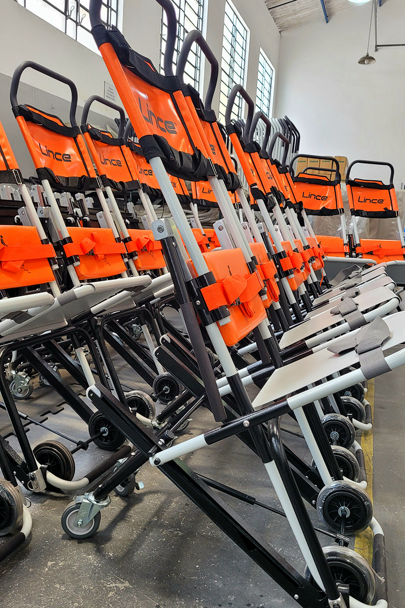 Com este propósito fabrica e distribui a cadeira LINCE, a primeira cadeira brasileira de descida de escadas por sistema de correias.