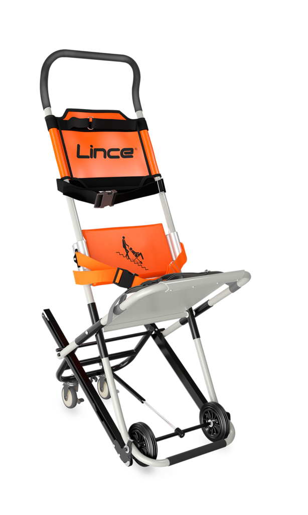 Com um conceito inovador a  cadeira de evacuação Lince SRE é essencial para garantir a segurança e o bem-estar de pessoas com mobilidade reduzida (momentânea ou permanente) em situações de emergência.